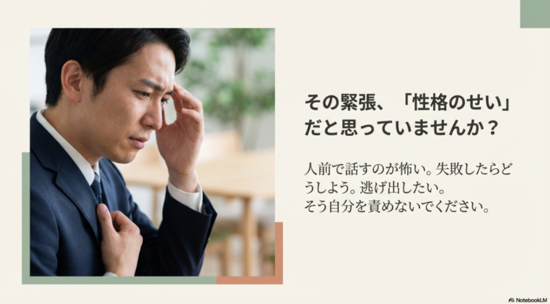 このサイトは、情報提供のみを目的としています。 医学的なアドバイスや診断については、専門家にご相談ください。 人前に立つと動悸がしたり、赤面したり、声の震えや手の震えが出たり。 面接やプレゼンの直前に、頭が真っ白になるような緊張って、ほん... -