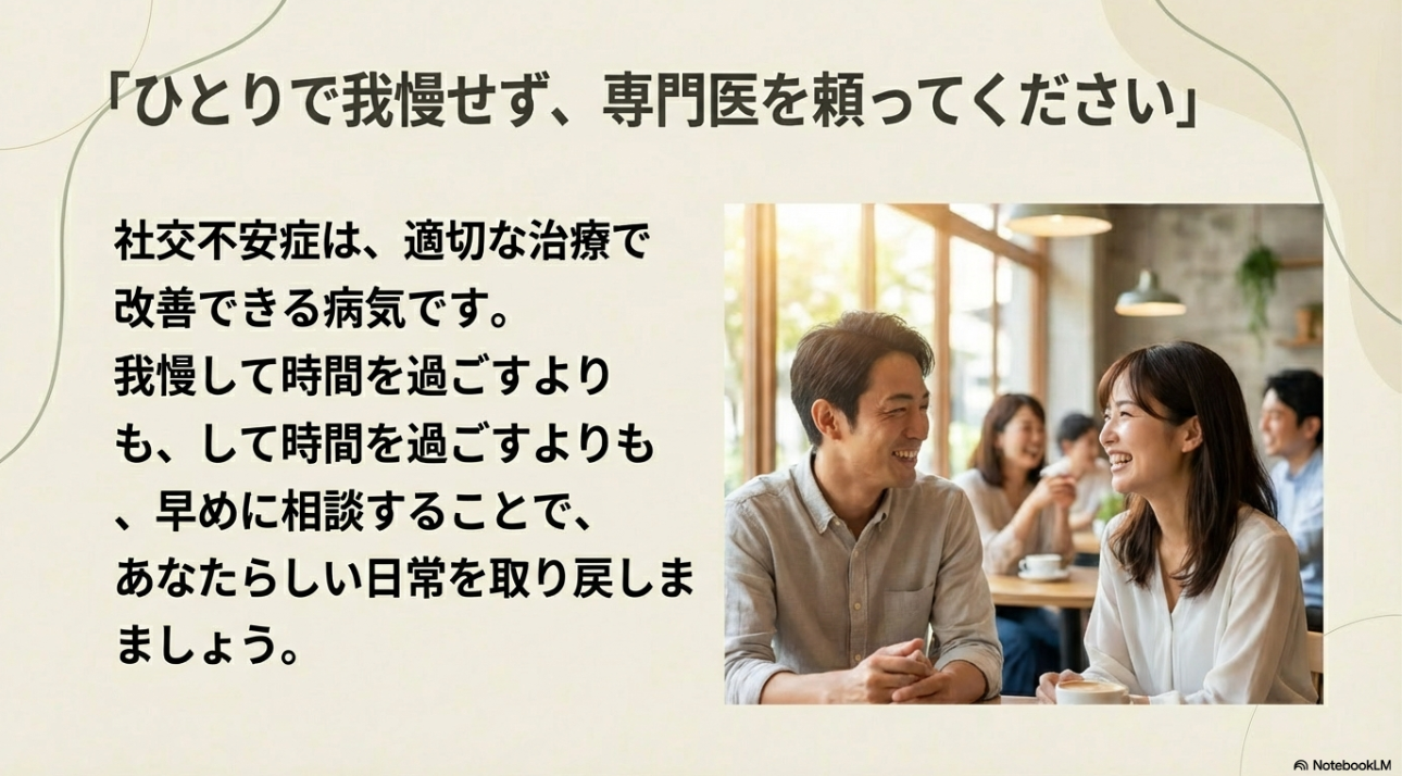 あがり症の専門医に相談するのは、気合いじゃなくて戦略を持つための一歩です。 焦らず、でも放置せず。 あなたに合うペースで進めていきましょう。