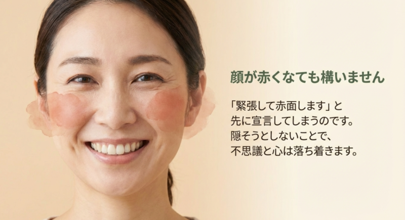 赤面を消すより、「赤面しながらでも進める」が強いです。  ここに切り替わると、赤面は勝手に弱まってきます。